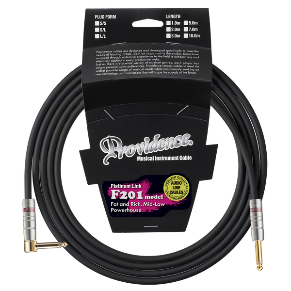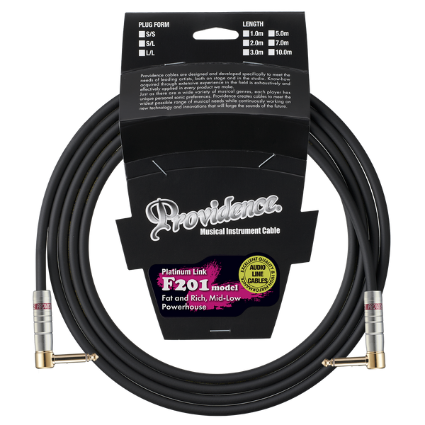 Furthermore, electromagnetic noise is shut out by using a super dense braided shield and carbon-containing conductive vinyl. It protects the sound from the floor-slapping noise that often occurs during use, high-frequency noise from TVs and radios, and noise generated from motors, etc. For the plugs, we use all 24k gold plated Providence NP-14G and NP-14GL (L-shaped plugs), which best match the sound required by the F201 cable.